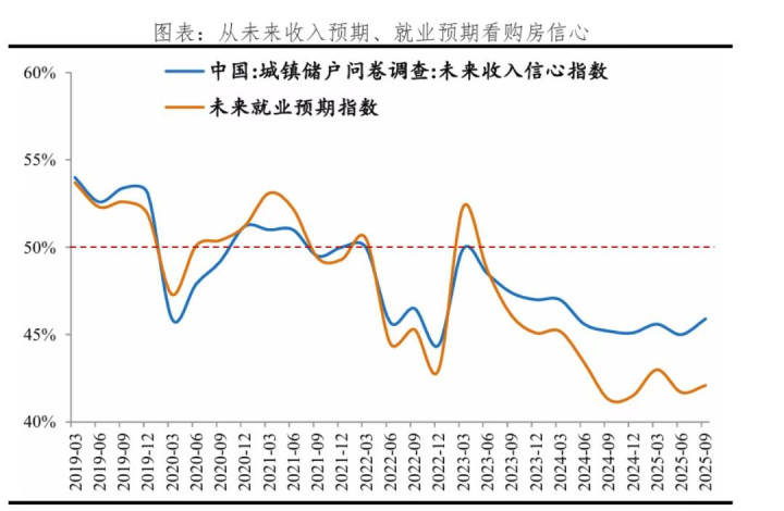 除了制造业PMI,我还会观察央行公布的城镇居民收入信心指数和就业预期指数。这两个指标体现了居民的信心和未来预期,是房市“领头羊”。
