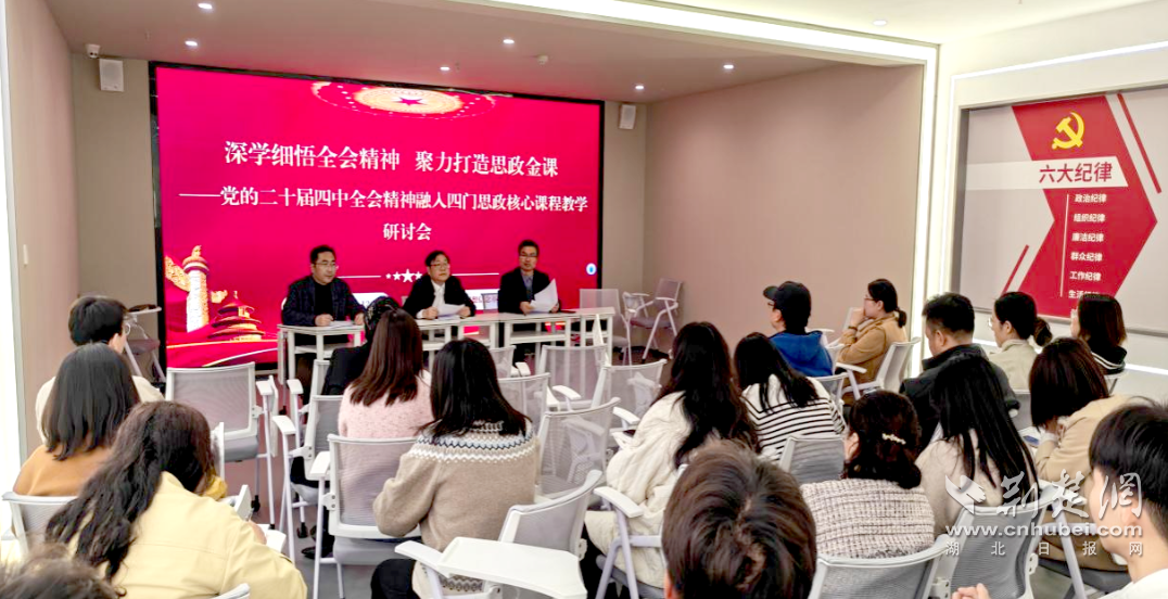 荆楚网(湖北日报网)讯(记者齐一璇 通讯员李夏、陈长风 摄影王齐昌)为深入学习贯彻党的二十届四中全会精神,明确全会精神融入各门思政课的路径方法,回答好“怎么进”“如何教”,持续增强党的理论创新最新成果入脑入心效果,近日,湖北城市建设职业技术学院马克思主义学院在理想信念基地举办“深学细悟全会精神 聚力打造思政金课”集体备课示范会。学校党委副书记胡俊、副校长易操,全体思政教师及二级学院学生代表共聚一堂,为全会精神落地生根思政课堂凝聚智慧,探索路径。